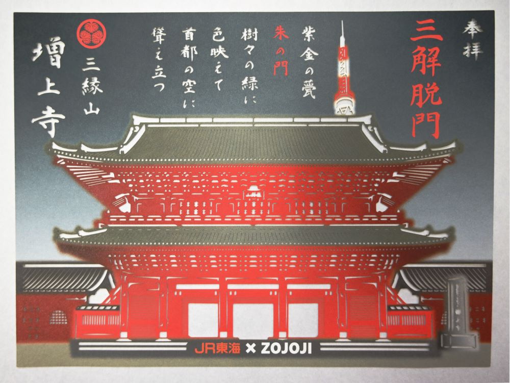 当社では、東京都港区の浄土宗大本山増上寺にある「三解脱門」をモチーフにした切り絵御朱印を制作いたしました。この御朱印は、増上寺の象徴的な建築である三解脱門の美しい意匠を、繊細な切り絵技術を用いて表現しています。